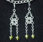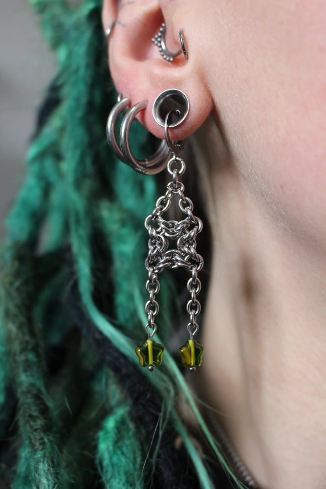 Green star square chainmail earrings