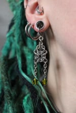 Stainless steel chainmail earrings with chain and glass star details.