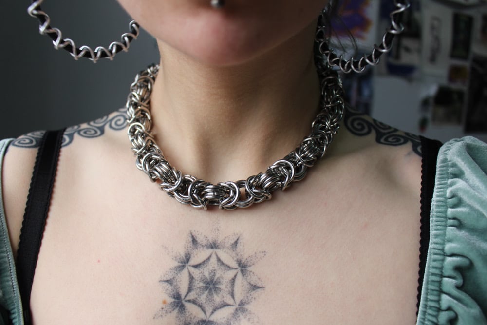 Stainless steel extra chunky byzantine neck chain