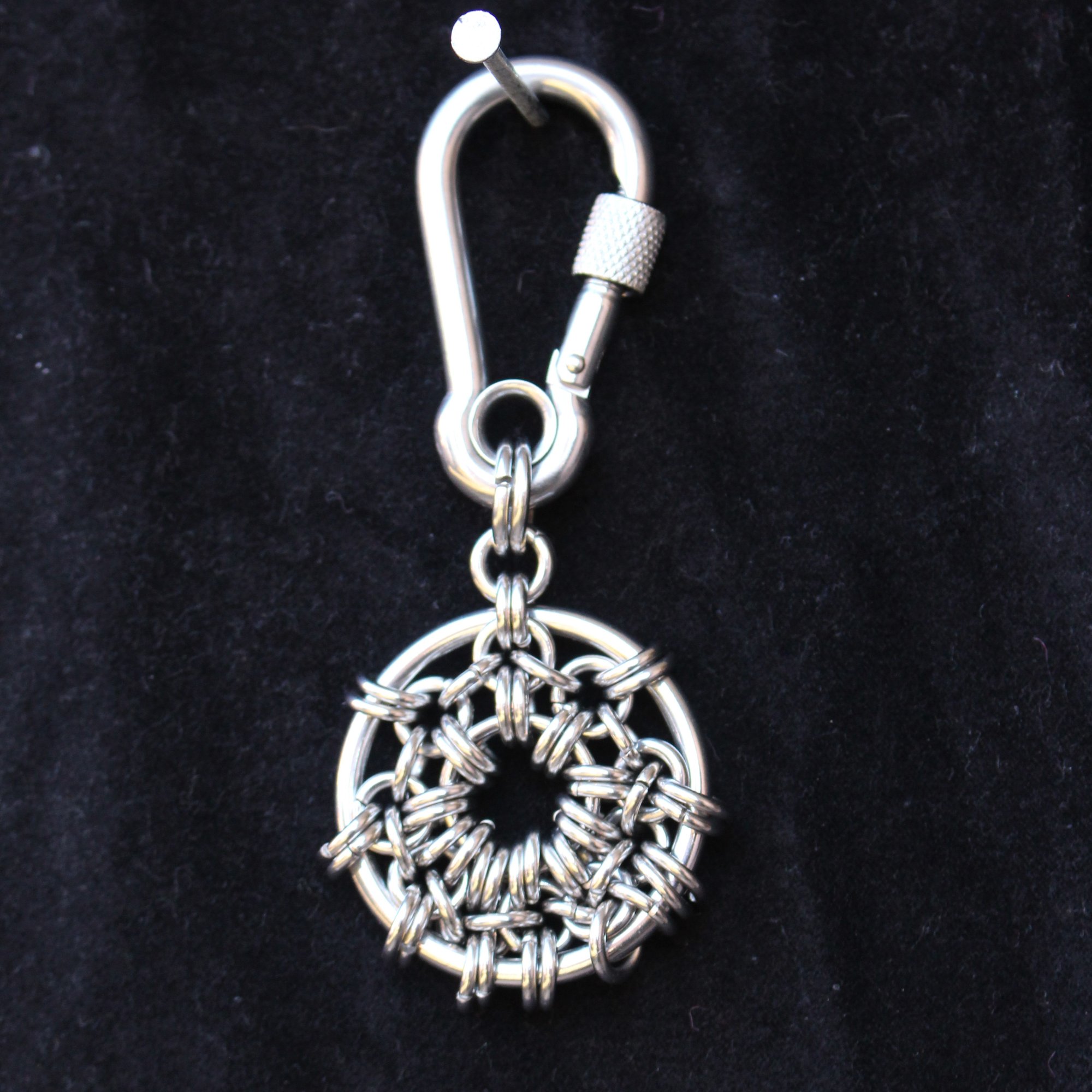 Stainless steel large O ring keyring on screw nut carabena